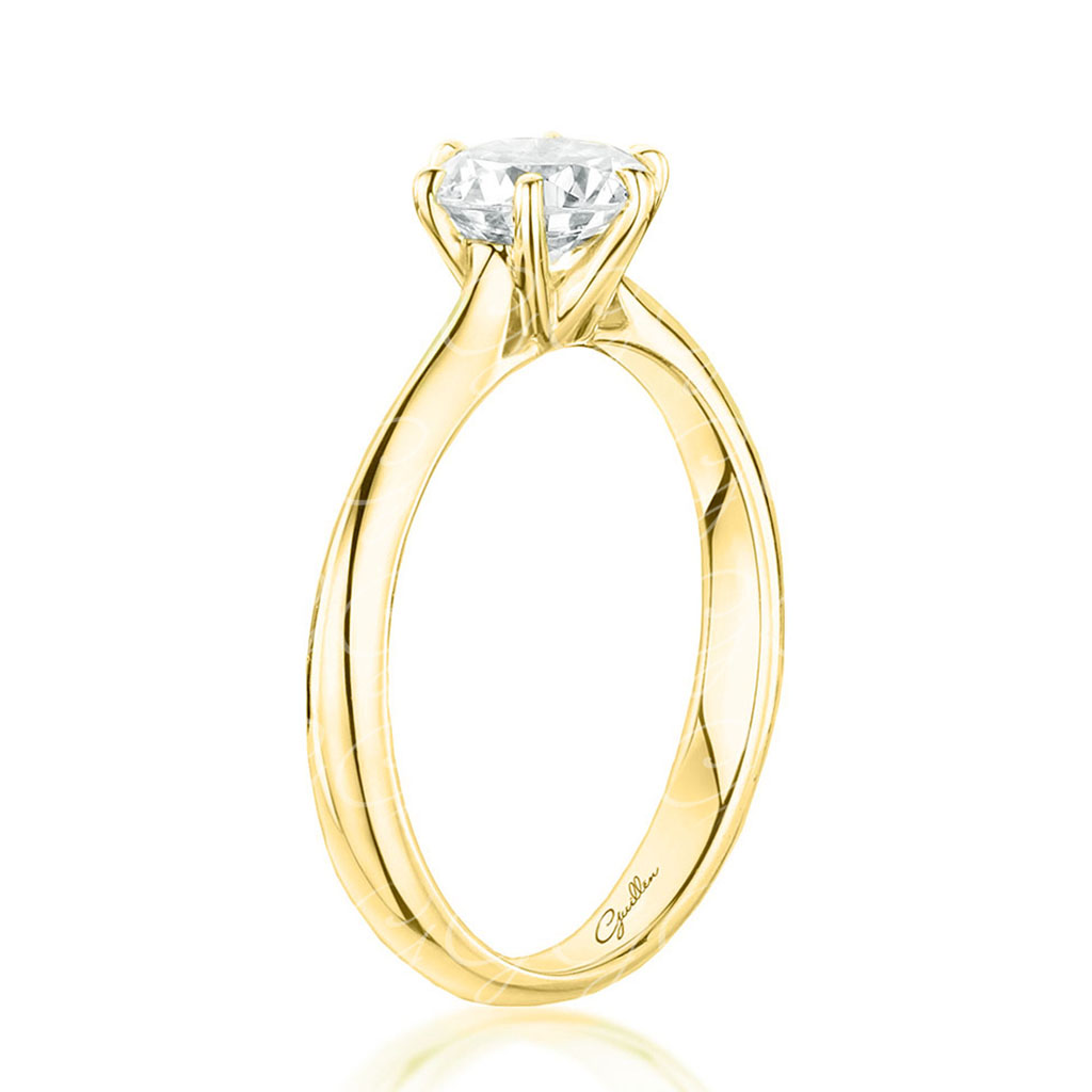 As its name in Greek indicates, this solitaire is a delicacy, sporting a six-pointed crown that holds a unique brilliant round cut diamond in the center, perfect for your wedding proposal.